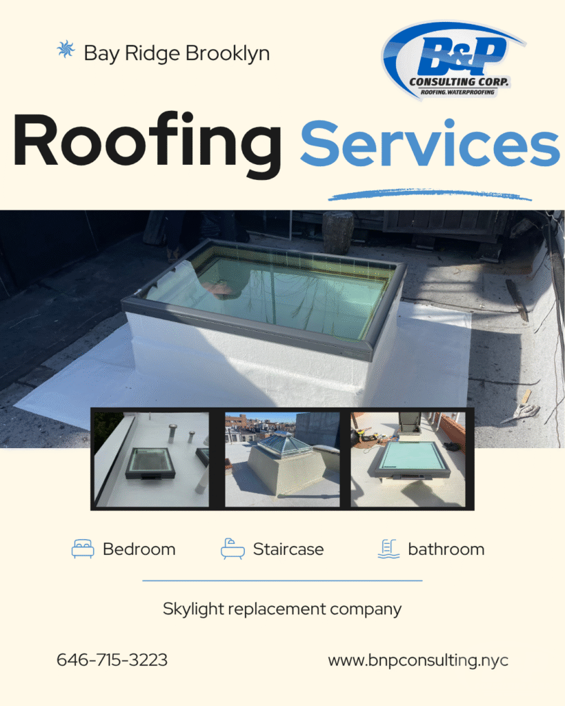 In Bay Ridge, Brooklyn, where wide avenues and charming row houses meet stunning views of the Verrazzano-Narrows Bridge, a flat roof skylight can be the perfect addition to flood your home with natural light and elevate its design. At B&P Consulting Corp., we specialize in flat roof skylight installationflat roof skylight repair, and flat roof skylight replacement. Whether you’re adding a skylight to brighten up your living space, need to fix an existing one, or are seeking a full replacement, we ensure the perfect fit for your Bay Ridge home. Let us help you create a brighter, more energy-efficient environment while enhancing the character of your property.