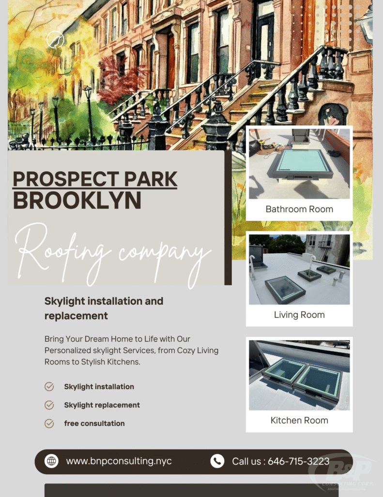 In Prospect Heights, Brooklyn, where historic brownstones and tree-lined streets meet the lush expanses of Prospect Park, a flat roof skylight can create a breathtaking focal point by flooding your home with natural light. At B&P Consulting Corp., we specialize in flat roof skylight installationflat roof skylight repair, and flat roof skylight replacement. Whether you’re interested in adding a skylight to elevate your living space, need to fix an existing one, or want to replace an outdated system, we deliver expert craftsmanship that enhances your Prospect Heights home’s charm. Let us help you introduce sunshine into your home while boosting energy efficiency and aesthetic appeal.