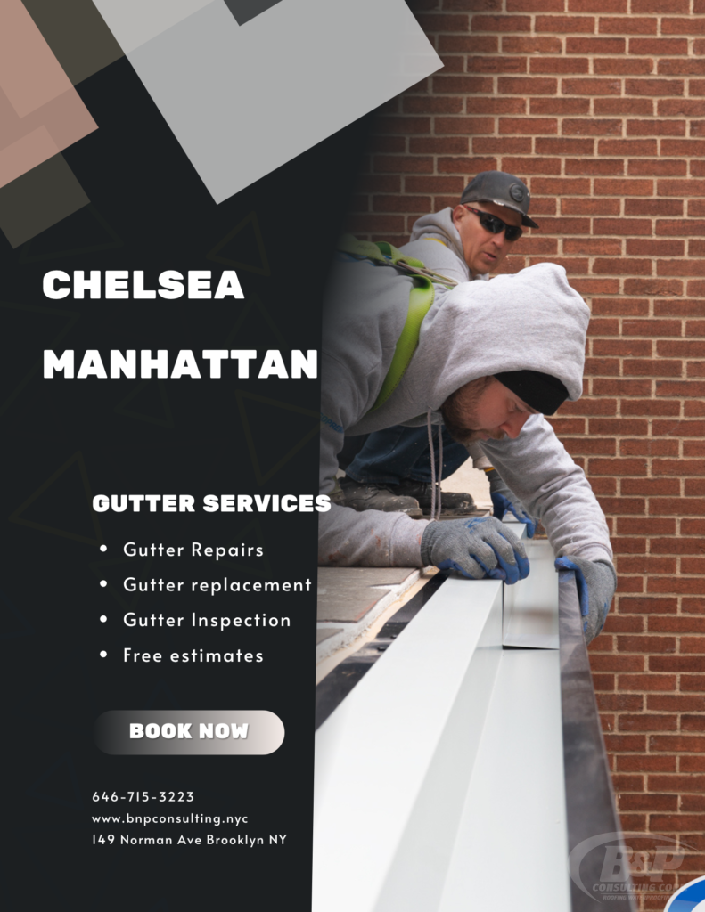 In Chelsea, Manhattan, where charming brownstones and luxurious lofts often share the streets with cutting-edge modern buildings, keeping your flat roof gutters in peak condition is vital for protecting your property from water damage. B&P Consulting Corp. specializes in flat roof gutter installationflat roof gutter replacement, and flat roof gutter repair. Whether you’re updating your existing system, fixing damaged gutters, or replacing outdated ones, our team ensures your gutters work efficiently to safeguard your home from leaks and water damage. Trust us to maintain your Chelsea home’s gutters, allowing you to enjoy the beauty of this vibrant neighborhood without worry.