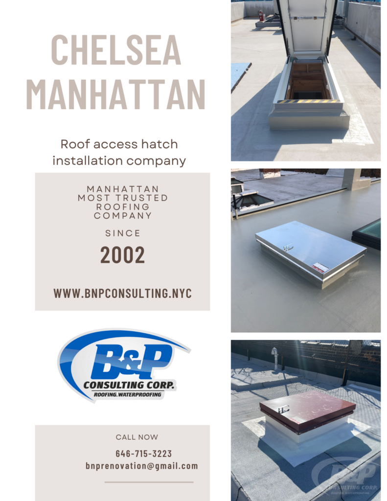 In Chelsea, Manhattan, where expansive rooftops offer stunning views of the city’s skyline and the Hudson River, having convenient access to your roof can make all the difference. B&P Consulting Corp. offers professional roof access hatch installation that integrates smoothly into your property’s design. Whether you’re planning to build a rooftop garden, take in the city’s views, or need safe, efficient access for maintenance, our custom solutions allow you to unlock your rooftop’s full potential. Experience the best of Chelsea’s skyline with a tailored roof access hatch that complements your home’s style.