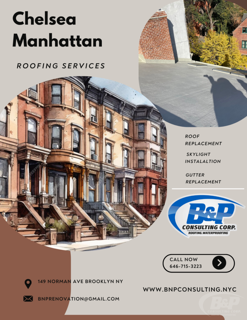 If you’re searching for a trusted, top-rated roofing company in Chelsea, ManhattanB&P Consulting Corp. is here to help. From roof inspections to installations, repairs, and maintenance, we specialize in roofing services tailored to the distinctive needs of Chelsea homes and businesses. Our expert team is known for its attention to detail, exceptional customer service, and commitment to delivering high-quality results. Contact us today at 646-715-3223 for a free consultation and discover why B&P Consulting Corp. is the roofing company of choice for Chelsea’s residents.