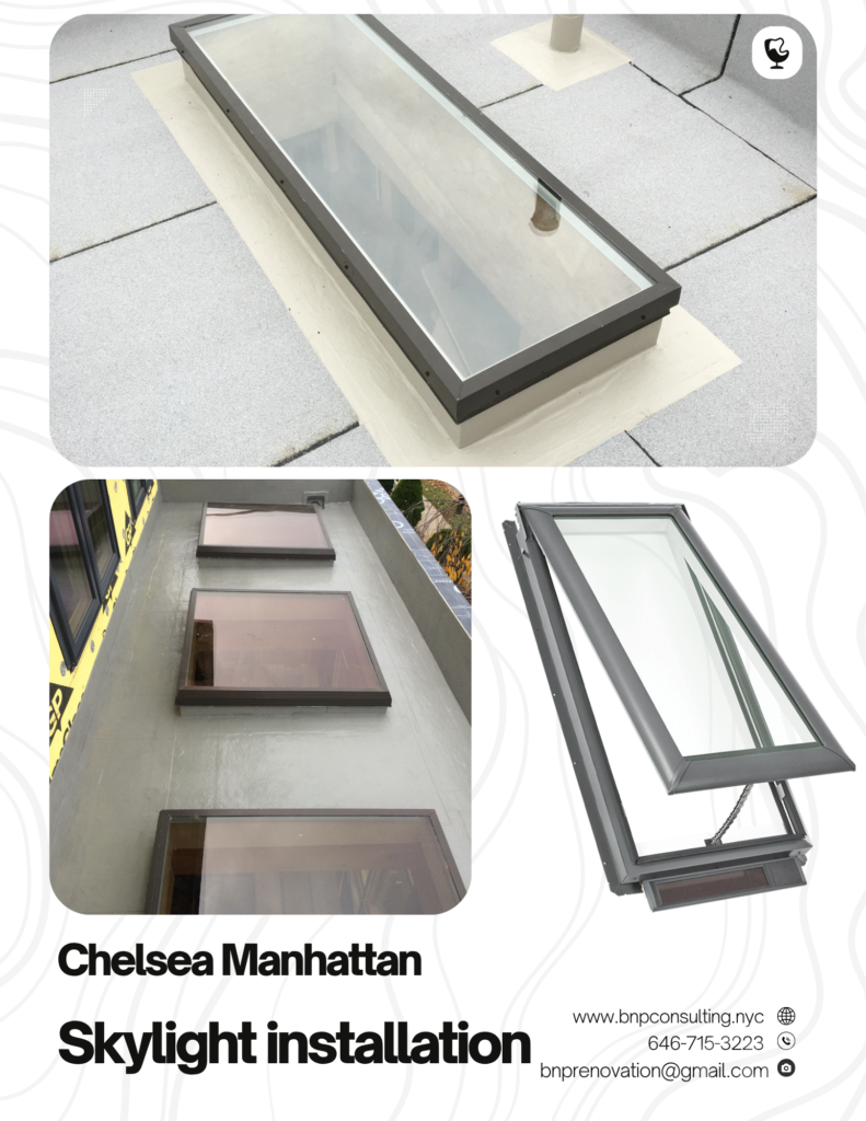 In Chelsea, Manhattan, where the art scene flourishes amid iconic galleries, sleek modern apartments, and historic townhouses, a flat roof skylight can bring natural light into your living space, enhancing both its beauty and functionality. At B&P Consulting Corp., we specialize in flat roof skylight installationflat roof skylight repair, and flat roof skylight replacement. Whether you’re seeking to introduce more light into your loft, fix a leaking skylight, or replace an outdated fixture, we provide custom skylight solutions that complement the unique aesthetic of your Chelsea property. Let us brighten your space while improving your home’s energy efficiency.