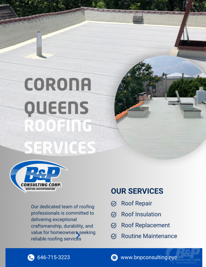 Located in the heart of QueensCorona is a dynamic and bustling neighborhood with a blend of residential homesapartment buildings, and commercial spaces. At B&P Consulting Corp., we specialize in roof replacement, roof repair, and roof installation services tailored to meet the unique needs of properties in Corona. Whether you need to replace a worn-out roof, fix a leak, or install a new roofing system, our team provides top-quality craftsmanship and durable roofing solutions designed to ensure your property remains secure and protected.