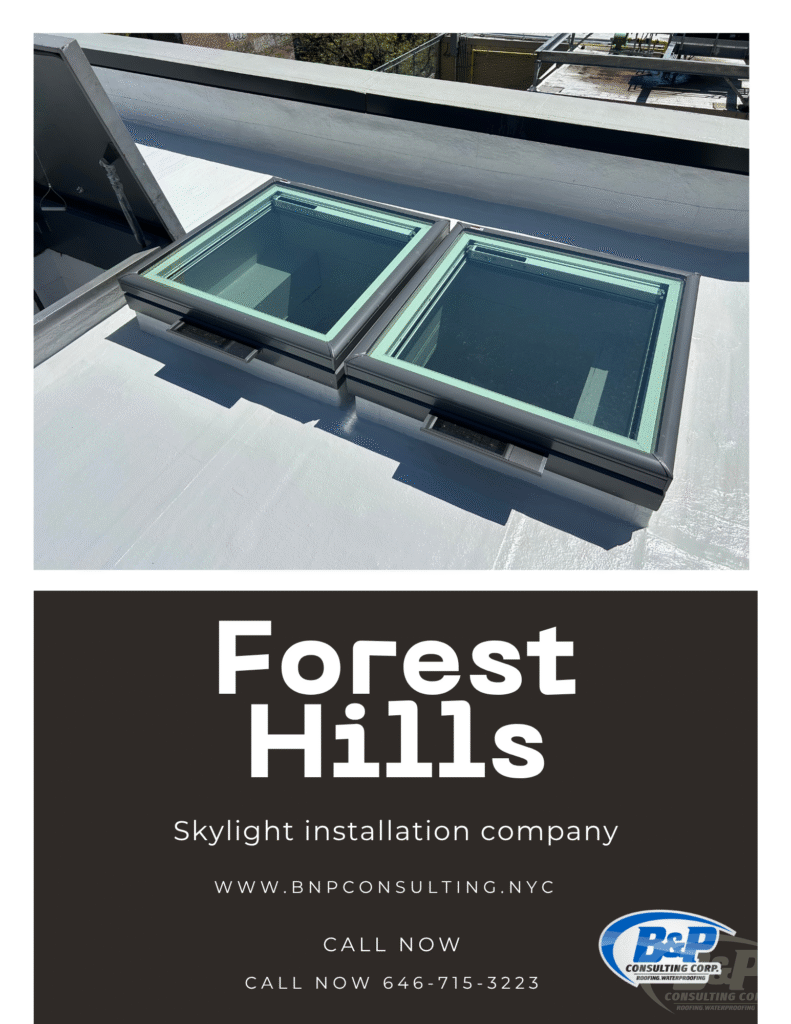 Brighten your Forest Hills property with a new flat roof skylight installation from B&P Consulting Corp. We offer expert flat roof skylight installation, repair, and replacement services that enhance your home’s natural light, energy efficiency, and overall aesthetic. Whether replacing an old, inefficient skylight, repairing a leaky one, or installing a brand-new system, our team ensures that the solution perfectly complements your Forest Hills home’s design and provides lasting value.