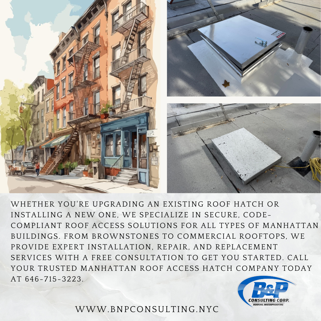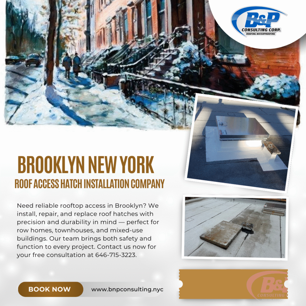 B&P Consulting Corp is a trusted Brooklyn-based contractor specializing in roof hatch installation, repair, and replacement, providing safe, durable, and code-compliant rooftop access solutions for historic brownstones, Brooklyn townhouses, row homes, and mixed-use buildings. We understand the unique construction details and preservation considerations that come with older properties, and we approach every project with precision, care, and respect for the building’s original character.