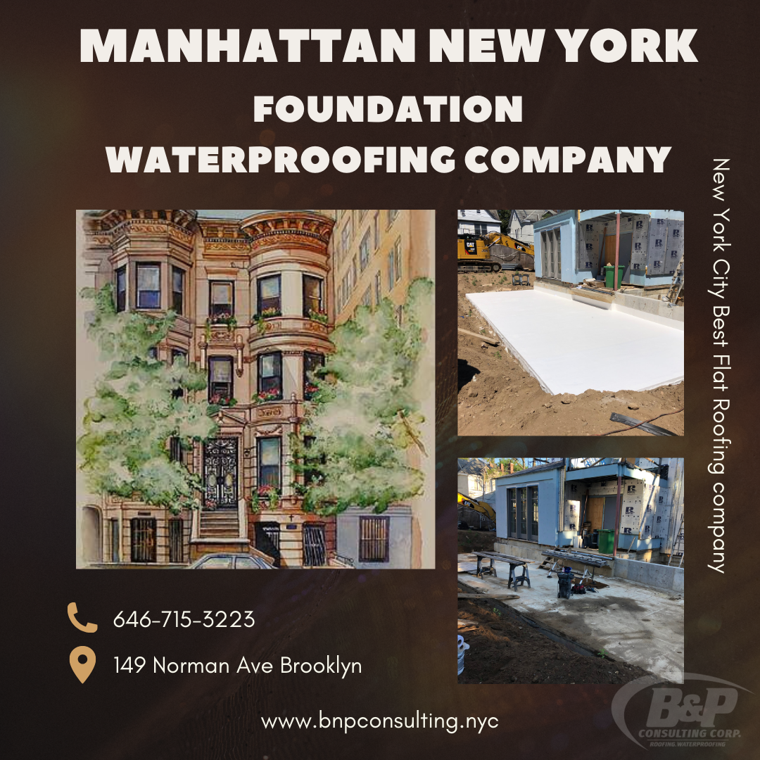 Manhattan brownstone townhouses sit on tight urban lots with historic foundations often exposed to groundwater, heavy rain infiltration, poor exterior drainage, and aging masonry, which can allow water to seep into basements, causing dampness, efflorescence, mold growth, and structural deterioration. B&P Consulting Corp is your expert provider of exterior foundation waterproofing and interior foundation waterproofing in Manhattan, New York.