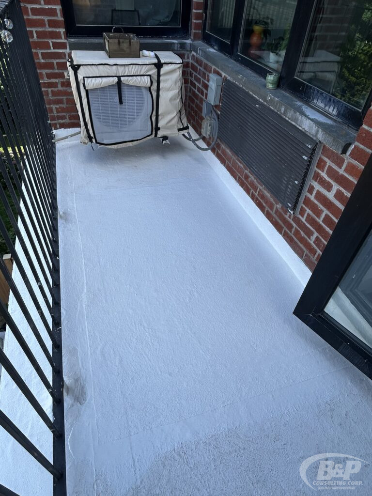 B&P Consulting Corp specializes in balcony waterproofing throughout New York City, offering over 20 years of experience in high-quality workmanship and durable results. We take pride in using Soprema PMMA liquid-applied waterproofing materials, known for their exceptional performance, flexibility, and long lifespan. This advanced liquid system forms a seamless, watertight barrier that prevents leaks and structural damage. In addition, the system provides an aesthetically superior, walkable coating, giving your balcony both beauty and durability. At B&P Consulting Corp, we combine technical expertise with refined craftsmanship to ensure every balcony is protected and finished to perfection.