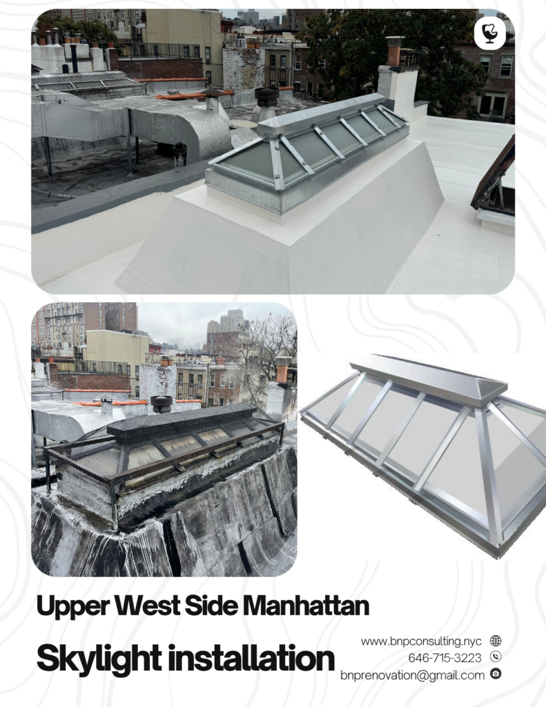 In the Upper West Side, Manhattan, where classic brownstones, elegant pre-war buildings, and modern high-rises line the avenues, a flat roof skylight can bring a touch of brightness to your living space, making it feel more open and airy. At B&P Consulting Corp., we specialize in flat roof skylight installationflat roof skylight repair, and flat roof skylight replacement. Whether you want to add a skylight to enhance the natural light in your apartment, repair a leaking one, or replace an outdated fixture, we offer custom skylight solutions that blend seamlessly with your Upper West Side property’s architectural style. Illuminate your home with the warmth and beauty of natural light, while improving energy efficiency.